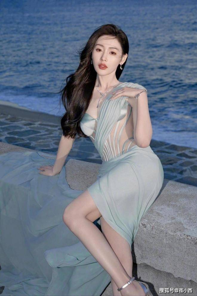 还有下面这一身性感的透视连衣裙,一般人真的驾驭不了,低饱和的薄荷绿清透大方,自带清凉的夏日氛围感,衬得她皮肤冷白透亮,又和海边的光影完美融合,完全不会显得突兀,反而像从海浪里走出来的人鱼公主。