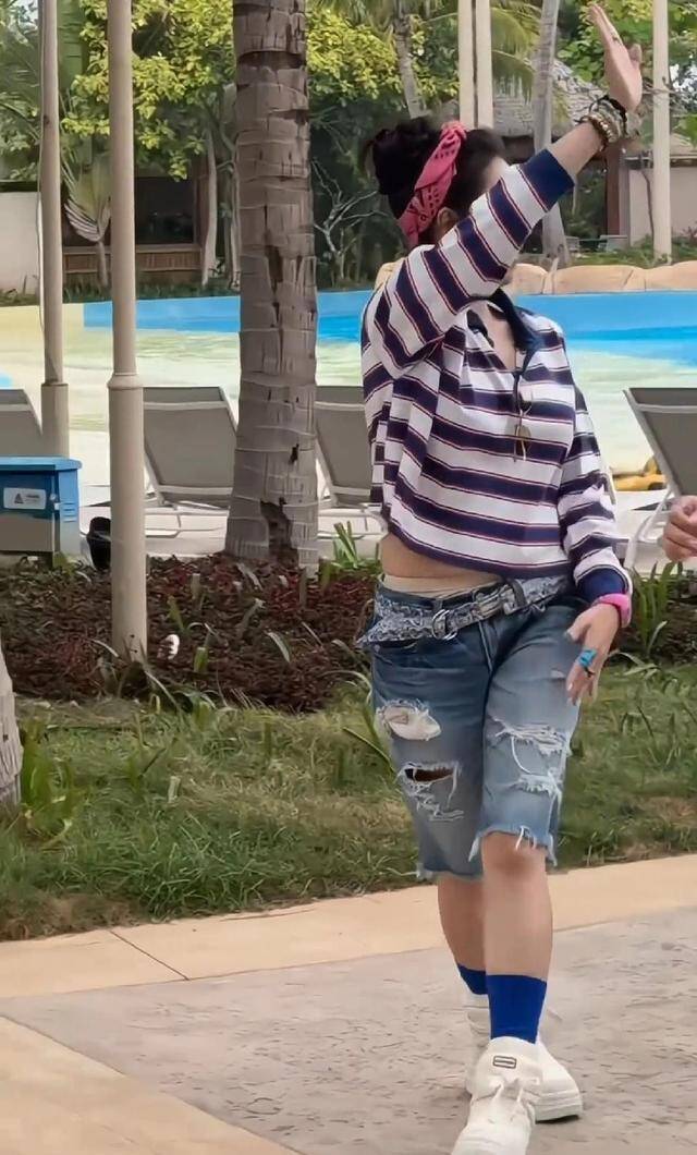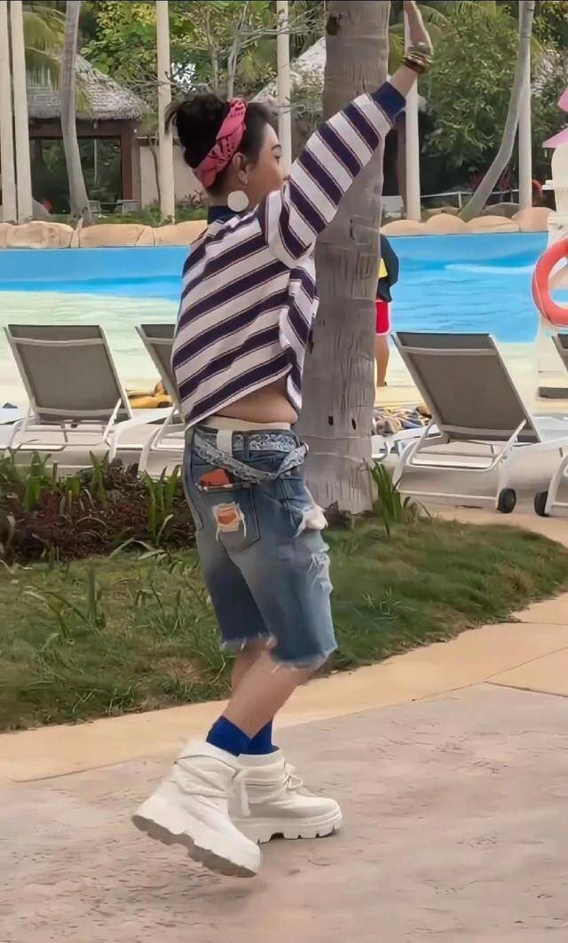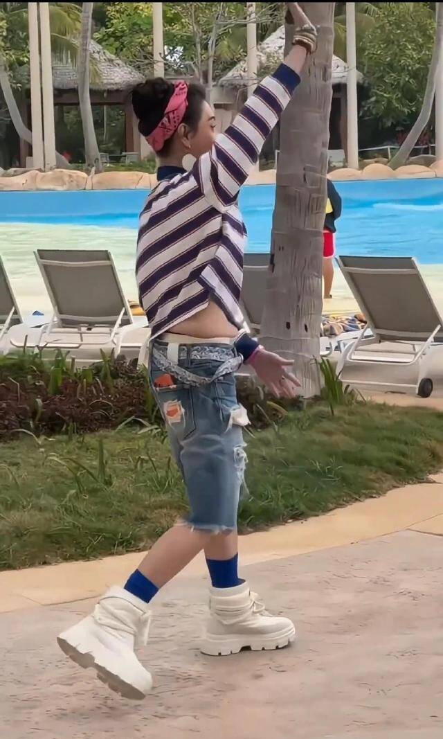 三亚的海风,吹动张柏芝身上那件超短条纹上衣。她抬手的一瞬间,肚子上一圈软乎乎的肉,就那么明晃晃地露了出来。
